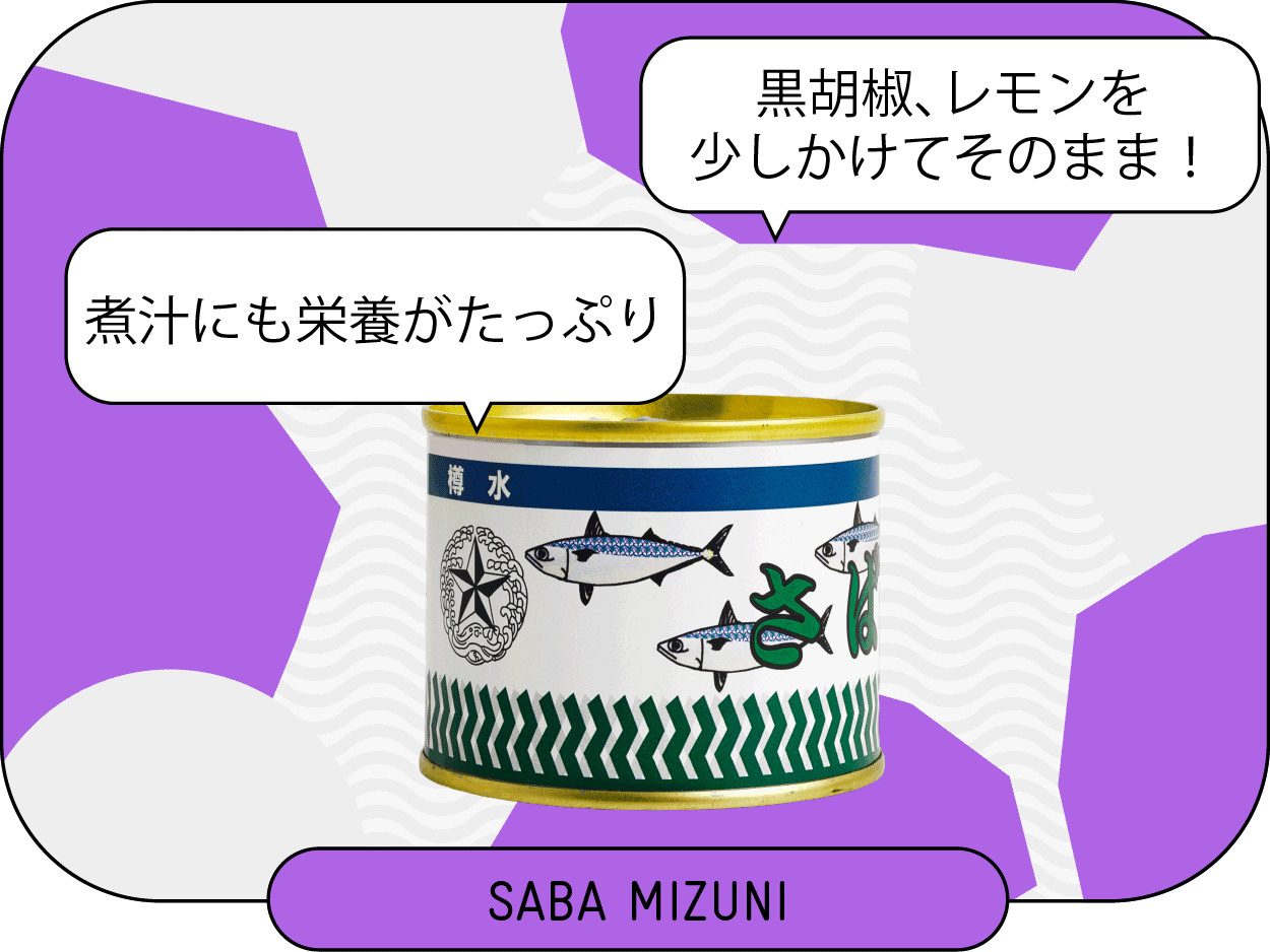 新鮮なサバを使用した水煮缶。「原材料はサバと食塩だけですが、そのまま食べてもしっかりとおいしいのがポイントです。もちろん料理に使うのもおすすめです。サバのおいしさをそのまま楽しめる一品です」(水産食品科/3学年/三田依奈)