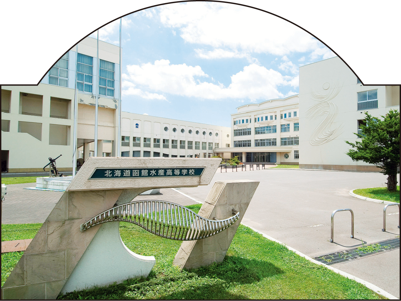 明治12年に設立された旧函館商船学校の施設を継承する形で1935年に北海道庁立函館水産学校として開校した、北海道南部の北斗市にある水産系専門高校。「北海道函館水産高等学校は、令和8年度より海洋技術科、食品創造科、機関工学科の3学科となります。それぞれの学科では、乗船実習など船舶や海洋に関する知識と技術、食品加工や衛生管理から製品開発に至る知識と技術、船舶機械をはじめとした機械に関する知識と技術を習得します。そのため、一般の高校にはない実習や本格的な設備を備えた学校です。また、専攻科機関科を設けているので、卒業後はさらに2年間、専門的な知識と技術を学んでいます。堅忍不抜(けんにんふばつ)の気魄(きはく)、進取力行(しんしゅりっこう)の態度、礼譲親和(れいじょうしんわ)の気風、勤労愛好(きんろうあいこう)の精神のもと、社会人としての専門性や行動力を見越した学校生活を送っています」(水産食品科/2年/森 斗真)