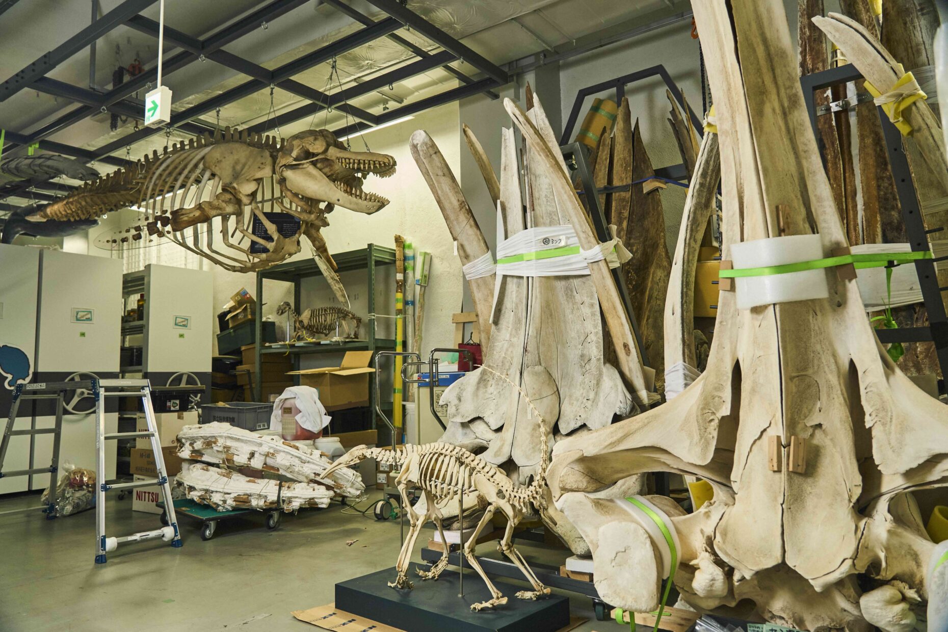 2011年に完成した国立科学博物館の筑波研究施設には、骨格標本だけでなく、内臓のホルマリン漬けや歯や被毛など、膨大な量のサンプルが保管されている。 「ストランディングは一期一会。可能な限りそこから得られる情報なり、サンプルは回収するようにしてます。私も25年くらいやってきましたけど、ここに入った当時は、冬の時期には1週間に同じ種が12頭くらい日本海側で上がってたりして、ほとんど時間が取れないぐらい忙しかったんです」