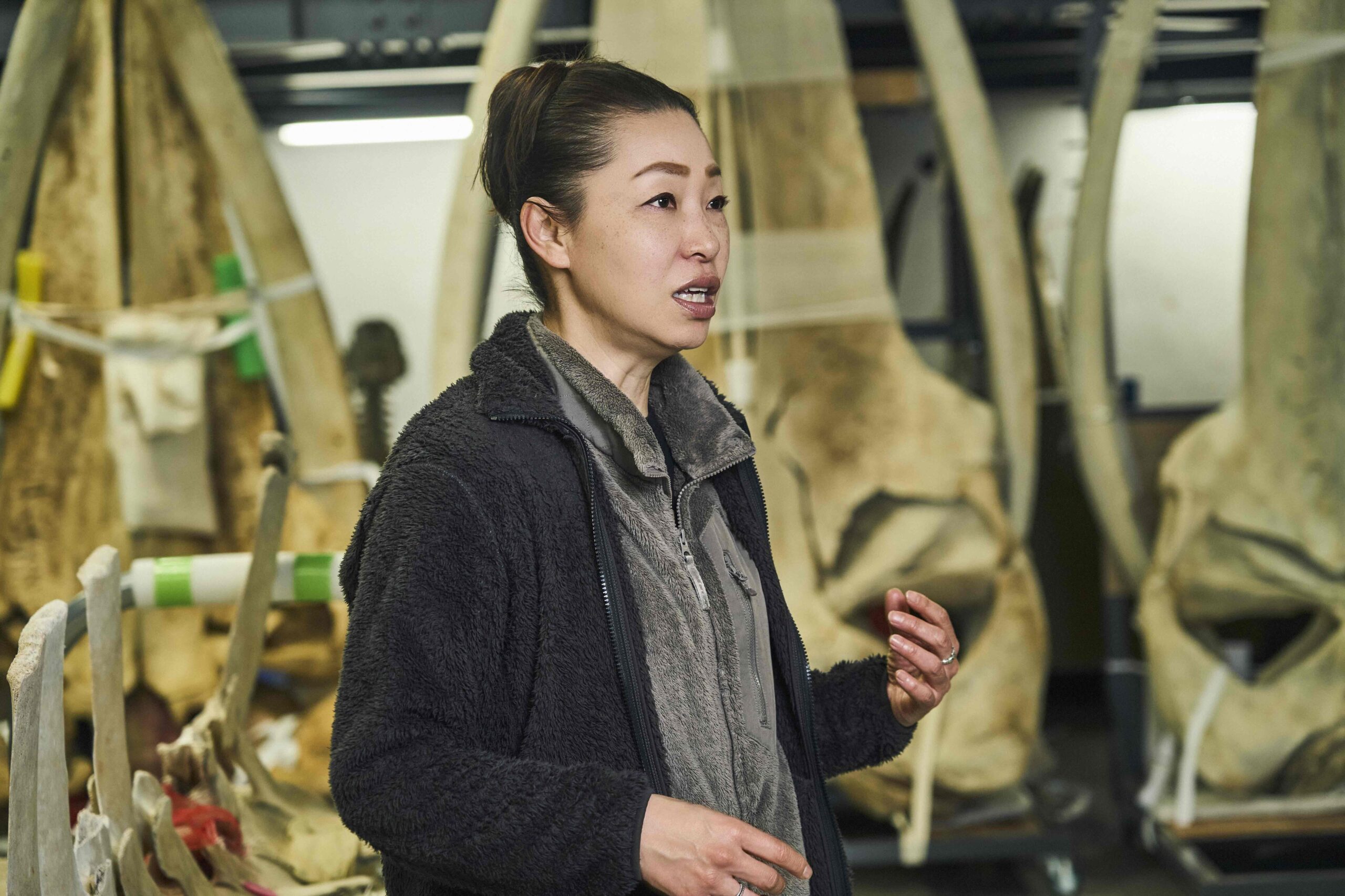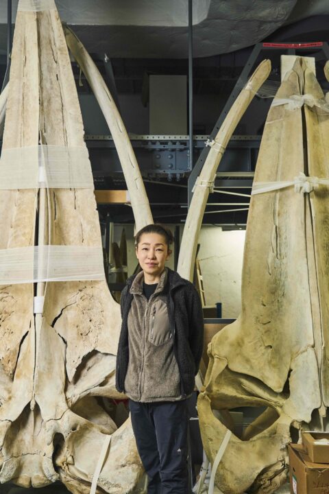 茨城県つくば市にある国立科学博物館の筑波研究施設を拠点に、クジラやイルカ、アザラシやアシカ、ジュゴンやラッコといった海棲哺乳類の研究活動を展開している田島木綿子さん。『海獣学者、クジラを解剖する』(2021/山と渓谷社)、『クジラの歌を聴け』(2023/山と渓谷社)といった著書でもお馴染みの“クジラの先生”だ。「ストランディング」、つまりクジラやイルカが生きたまま浅瀬で座礁したり、本来の生息域から離れて河川などに迷い込んだり、死体が海岸に打ち上げられたりする現象が起きたと連絡が入ると、可能な限りすぐに飛んでいって解剖調査するのも田島さんの仕事。死体は自ら標本化し、研究成果とともに博物館での展示や教育普及活動へと展開している。